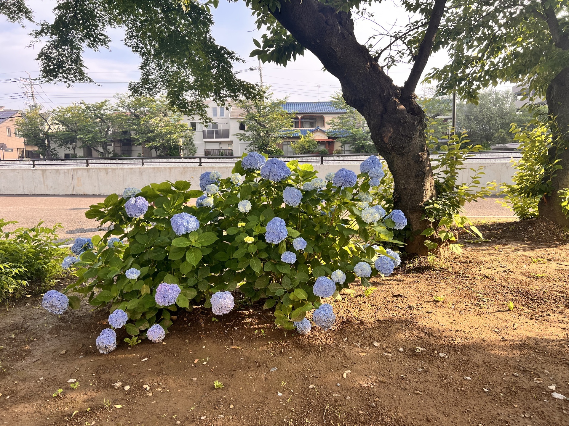 朝の日差しは、もう夏に向けて容赦ありません。朝6時といえども、もう暑いです。梅雨の時期に、紫陽花が見頃です。